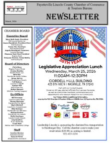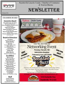 The Fayetteville-Lincoln County Chamber of Commerce publishes a monthly newsletter and distributes it to all active members.